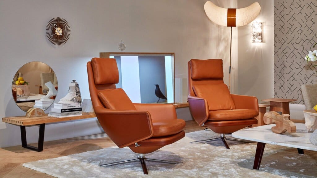 For 2019’s Salone del Mobile taking place in Milan, Vitra explores four distinct environments shaped by four points of view: the lens of the collector, the stance of the bohemian, the attitude of the global entrepreneur and the perspective of the nomad. The brand launches a new lounge chair, as well as featuring updates and new products.